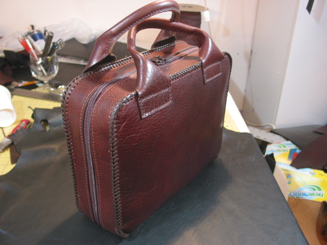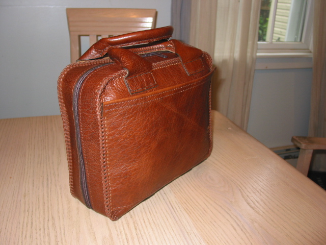 Ultimate bags are made of leather with these exceptions; the stitching, which is 5 strand Braided Waxed Nylon or #138 poly, the Nylon Coil Zippers and the brass hardware. There are no fillers. The lacing I use is 3/32 inch Kangaroo. Unless specifically requested the linings and interior pockets on all pipe bags are deerskin. Extrerior leathers include cowhide, bison and buffalo. Each pipe bag is cut by hand and hand made. The interiors are machine stitched and the outer shell is hand stitched or hand laced.